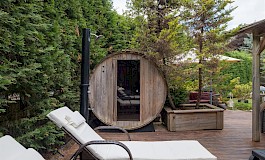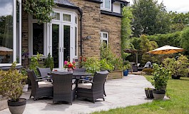 - Lovely private garden fully enclosed by mature hedging and planting as well as separate large garage and driveway parking for several cars