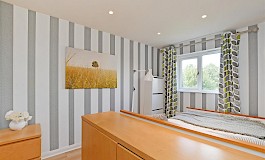 - Wonderful front facing bay window with modern interior design and log burner