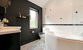 - Three bedrooms on the first floor with a modern bathroom