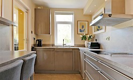 - Separate modern Karl Benz kitchen with integrated appliances and breakfast bar