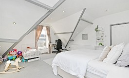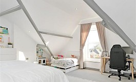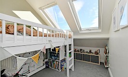 T0 the second floor is a smaller good sized single bedroom with ample light flowing from the velux roof windows and an impressive double master suite with a walk in wardrobe and ensuite shower room, providing a private sanctuary, that benefits stunning views across the city and beyond.