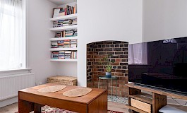 Upon entering, you are welcomed into a spacious reception room with its stunning feature open brick fire space flanked by alcove shelving. The modern wood finish fitted kitchen dining space to the rear is laid out perfectly for functionality and has a good range of cabinetry and appliances some of which to be included. A rear door provides access to the garden area which has a graveled area and a patio seating area perfect for relaxing and enjoying some out door space.