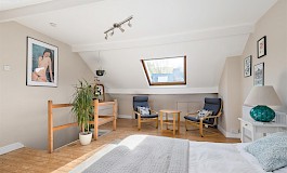 The three ample bedrooms, two of which are double are all presented to a high standard. The attic bedroom is again flooded with light and further useful eaves storage. The contemporary bathroom has been thoughtfully designed and executed, with a white suite, comprising of bath and a separate shower, ensuring a stylish and functional space for your daily routines.