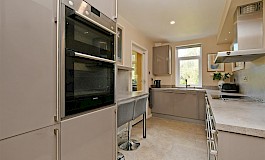 - Separate modern Karl Benz kitchen with integrated appliances and breakfast bar