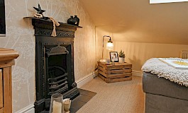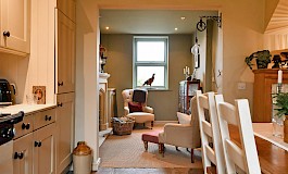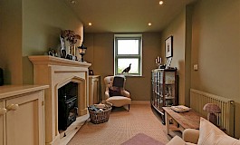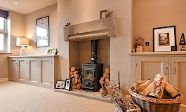 Open plan from the kitchen is a cosy snug/lounge, again with a feature fireplace. The layout is thoughtfully designed to create a warm and welcoming atmosphere, making it easy to envisage family gatherings and social occasions.