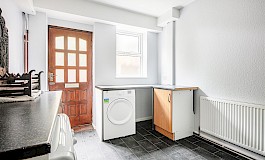 The accommodation includes a spacious communal lounge and dining area on the ground floor, positioned adjacent to a modern, well-fitted kitchen offering ample work surface and storage space, along with integrated appliances including a dishwasher and fridge freezer, as well as a further utility area. In addition, there is a separate large utility room providing excellent drying space, two fridge freezers, a washing machine and a separate tumble dryer. The property benefits from two well-appointed bathrooms and three toilets in total, ensuring convenience and comfort for all occupants. All six bedrooms are generous double rooms, each fully furnished with a double bed, desk and fitted wardrobe or hanging space, making the property ideally configured for HMO use.