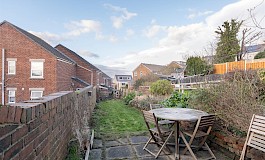 The enclosed private rear garden is a lovely outdoor space, with mature lawn, borders and patio seating area, ideal for enjoying the fresh air, gardening, or simply unwinding after a long day.