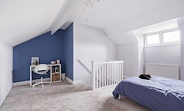 To the first floor are two double bedrooms; the master sits to the front aspect and has built-in storage. The family bathroom is also on this floor and has a modern white suite. On the attic floor is a larger double bedroom with abundant eaves storage and light flooding from the dormer window.